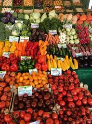 Keywords: market vegetables healthy mediterranean tomatoes purchasing food paprika sale market stall appetizing farmers local market gourmet