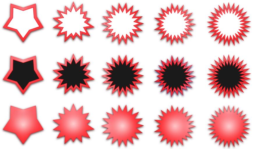 Keywords: marketing ad promotion set star burst star burst red black white colorful icon art label isolated design collection button blank deal sale open new