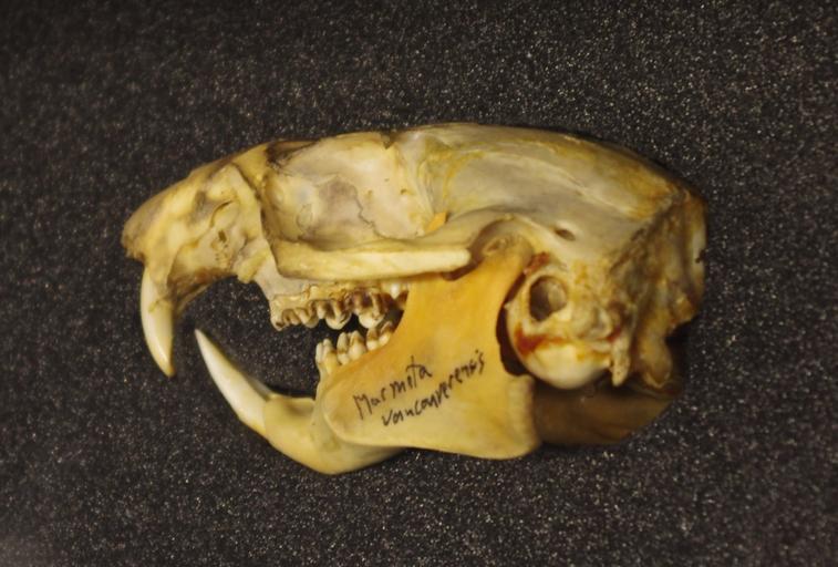 | Keywords: Marmota vancouverensis skull at the Beaty Biodiversity Museum.JPG en Marmota vancouverensis skull at the Beaty Biodiversity Museum 2012-08-18 own Eviatar Bach cc-zero Uploaded with UploadWizard Marmota vancouverensis Beaty Biodiversity Museum Taken with Pentax K-r Files by User InverseHypercube Marmota skulls |
