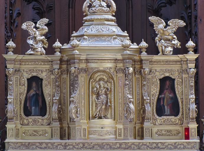 Keywords: Marmoutier Abbaye 186.JPG Alsace Bas-Rhin Marmoutier Église abbatiale Saint-Etienne Maître-autel XVIIIe avec tableaux des saints Auteur et Céleste own Rh-67 cc-by-sa-3 0 PM67000865 IM67011783 IM67011782 Artwork / Œuvre d'art / Kunstwerk Artist Saints Céleste et Auteur évêques de Metz dont les corps furent transférés à Marmoutier en 828 et qui furent vénérés jusqu'au 18e siècle Leurs reliques sont conservées dans les reliquaires situés de part et d'autre du tabernacle XVIIIe siècle oil wood 56 cm de haut Abbatiale Saint-Étienne Marmoutier Maître-autel IM67011782 object history Ces tableaux fermeraient des niches ayant abrité des reliques et ont été datés du 19e siècle ; il semble pourtant qu'ils puissent être des oeuvres du 18e siècle même s'ils ne datent pas du début du siècle comme le reste de tabernacle other versions Ralph Hammann PD-old accession number Photographs of Marmoutier by Ralph Hammann Taken with Canon PowerShot SX20 IS Choir altar of Abbey Church Marmoutier Baroque church paintings in Alsace 18th-century church paintings in Alsace Paintings of Christian saints in France Bishops of the Roman Catholic Diocese of Metz Baroque tabernacles in Alsace Tabernacles in Bas-Rhin Reliefs in Marmoutier Wooden reliefs in Bas-Rhin Reliefs of the Good Shepherd Reliefs of angels in Alsace Baroque reliefs in Alsace 18th-century wooden reliefs in Alsace Baroque statues in Bas-Rhin 18th-century statues in Alsace Wooden statues in Bas-Rhin Statues of angels in Alsace |