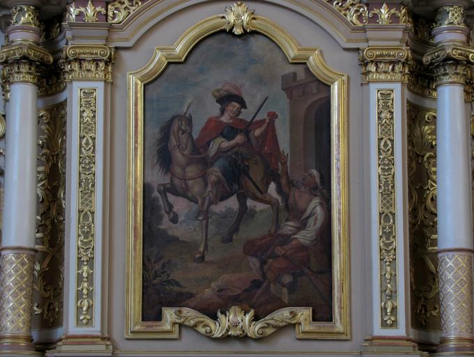 | Keywords: Marmoutier Abbaye 224.JPG  Alsace Bas-Rhin Marmoutier Église abbatiale Saint-Etienne Tableau de l'autel secondaire St-Martin XVIIIe own 2013 Ralph Hammann cc-by-sa-3 0 Artwork / Œuvre d'art / Kunstwerk Artist Charité de saint Martin le saint à cheval coiffé d'un chapeau à plumes partage son manteau rouge avec le mendiant assis devant une porte fortifiée circa 1730 oil canvas 110 cm de large Abbatiale Saint-Etienne Marmoutier Autel secondaire de Saint-Martin IM67011788 object history other versions Ralph Hammann PD-old accession number Photographs of Marmoutier by Ralph Hammann Taken with Canon PowerShot SX20 IS Autel de Saint-Martin Marmoutier Baroque church paintings in Alsace 18th-century church paintings in Alsace Objets monuments historiques in Bas-Rhin church paintings Paintings of Saint Martin of Tours Saint Martin and the beggar |