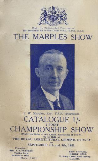 Keywords: Marplesclean1931.jpg en Dog show catalogue including a picture of J W Marples own SatuSuro Cc-zero Dog judges Exhibition catalogue covers