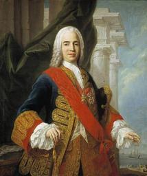 | Keywords: Marquis de la Ensenada by Amigoni.jpg Artwork Creator Jacopo Amigoni es Retrato del estadista y politico ilustrado español Zenón de Somodevilla 1702-1781 que fue marqués de la Ensenada y llegó a ocupar los cargos de secretario de Hacienda Guerra y Marina e Indias Asimismo fue nombrado sucesivamente superintendente general de Rentas lugarteniente general del Almirantazgo secretario de Estado notario de los reinos de España y caballero de la Orden del Toisón de Oro y de la Orden de Malta siendo además consejero de Estado durante los reinados de Felipe V Fernando VI y Carlos III de España 1750 Oil on canvas cm 104 124 Institution Prado http //www museodelprado es/enciclopedia/enciclopedia-on-line/voz/amigoni-jacopo/ PD-old-100 other versions <gallery>Marquis de Ensenada jpg</gallery> DEFAULTSORT 1750; Marquis of Ensenada Portrait paintings by Jacopo Amigoni 18th-century portrait paintings in the Prado Museum Zenón de Somodevilla 1st Marquis of Ensenada 1750s portrait paintings from Italy Male 1750 portrait paintings Male 18th-century oil portraits of standing men at three-quarter length Allonge wigs in paintings Badges of the Order of the Golden Fleece in portrait paintings Columns in portrait paintings Drapery in portrait paintings Habit à la française in portrait paintings Male portrait paintings with powdered wigs Sash of the Order of St Januarius in portrait paintings |