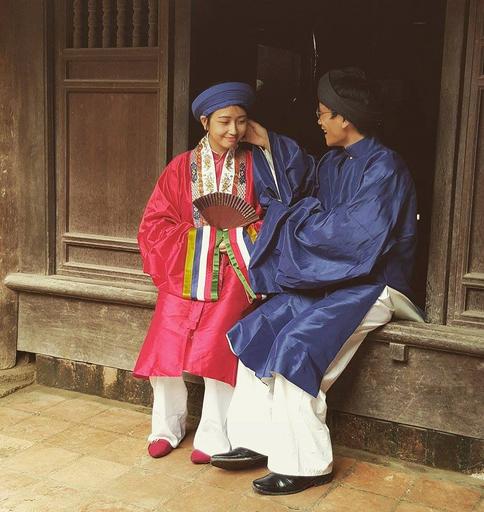 | Keywords: Married Vietnamese couple in Wedding ao dai, style of Nguyen dynasty (02).jpg vi Áo cưới phỏng quy chế triều Nguyễn của thiết kế gia Trần Nguyễn Trung Hiếu <br> - Cô dâu mặc áo dài bên trong khoác áo Nhật Bình bên ngoài đội khăn vành <br> - Chú rể mặc áo dài cổ đứng tay thụng vấn khăn trên đầu en Married Vietnamese couple in wedding ao dai style of Nguyen dynasty 2016-06-01 Nguyễn Hữu Sử Trần Nguyễn Trung Hiếu other versions cc-zero 2010s áo dài Wedding áo dài Brides and grooms Khăn vành dây |