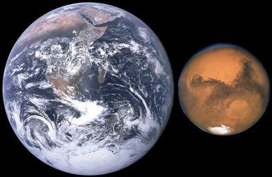 | Keywords: Mars, Earth size comparison.jpg en Size comparison of Earth and Mars 2015-04-27 02 04 15 Images found in NASA NASA image modified by Jcpag2012 other versions Custom license marker 2015 04 26 PD-NASA Uploaded with UploadWizard Earth size comparisons The Blue Marble Mars size comparisons Mars planet |