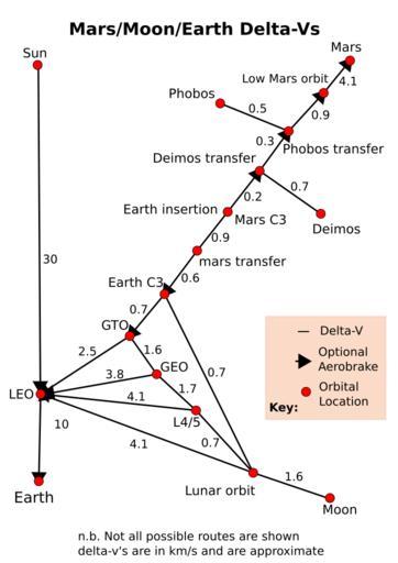 Keywords: MarsDeltav.svg Mars-Moon-Earth Delta-Vs 2007-02-16 own assumed Wolfkeeper Mars exploration Trajectories Celestial mechanics