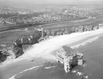 | Keywords: summer seaside holiday beach bay sand sea north east northeast marsden grotto marsdengrotto marsden rock marsdenrock aerial photographs aerialphotographs blackandwhite monochrome outdoor black and white This is an aerial view of Marsden Grotto taken in May 1953. Reference: DT.TUR/2/9996B This photograph is part of a set that has been created to celebrate the opening of South Tyneside Council’s new leisure centre, Haven Point, on 28 October. It focuses in particular on life along the foreshore at South Shields during the 1950s but also includes a few images from further down the coast. South Shields has long been a popular seaside resort and also has a proud industrial heritage. Times have changed, though, and many of the old industries such as shipbuilding and coal mining have disappeared. Rather than stand still and accept this change in fortunes, South Tyneside Council is pressing ahead with an ambitious vision to transform the Foreshore, Town Centre and Riverside areas into vibrant destinations. Haven Point is a key part of this change. Tyne & Wear Archives and South Tyneside Local Studies Library have a vital role to play in this. As South Shields is regenerated and forever changed the Archives and Local Studies serve as its memory. We keep alive a window into the town’s past, preserving the history of people, places and industries that no longer exist. South Shields must look forward but its sense of direction will be lost if it forgets where it came from. These images, together with a fantastic selection from South Tyneside Local Studies Library, can be seen in a digital exhibition at Haven Point. You can also see images from the Local Studies Library online at www.southtynesideimages.org.uk/. A Blog on this collection of images can be read here (Copyright) We're happy for you to share these digital images within the spirit of The Commons. Please cite 'Tyne & Wear Archives & Museums' when reusing. Certain restrictions on high quality reproductions and commercial use of the original physical version apply though; if you're unsure please email archives@twmuseums.org.uk This is an aerial view of Marsden Grotto taken in May 1953. Reference: DT.TUR/2/9996B This photograph is part of a set that has been created to celebrate the opening of South Tyneside Council’s new leisure centre, Haven Point, on 28 October. It focuses in particular on life along the foreshore at South Shields during the 1950s but also includes a few images from further down the coast. South Shields has long been a popular seaside resort and also has a proud industrial heritage. Times have changed, though, and many of the old industries such as shipbuilding and coal mining have disappeared. Rather than stand still and accept this change in fortunes, South Tyneside Council is pressing ahead with an ambitious vision to transform the Foreshore, Town Centre and Riverside areas into vibrant destinations. Haven Point is a key part of this change. Tyne & Wear Archives and South Tyneside Local Studies Library have a vital role to play in this. As South Shields is regenerated and forever changed the Archives and Local Studies serve as its memory. We keep alive a window into the town’s past, preserving the history of people, places and industries that no longer exist. South Shields must look forward but its sense of direction will be lost if it forgets where it came from. These images, together with a fantastic selection from South Tyneside Local Studies Library, can be seen in a digital exhibition at Haven Point. You can also see images from the Local Studies Library online at www.southtynesideimages.org.uk/. A Blog on this collection of images can be read here (Copyright) We're happy for you to share these digital images within the spirit of The Commons. Please cite 'Tyne & Wear Archives & Museums' when reusing. Certain restrictions on high quality reproductions and commercial use of the original physical version apply though; if you're unsure please email archives@twmuseums.org.uk |