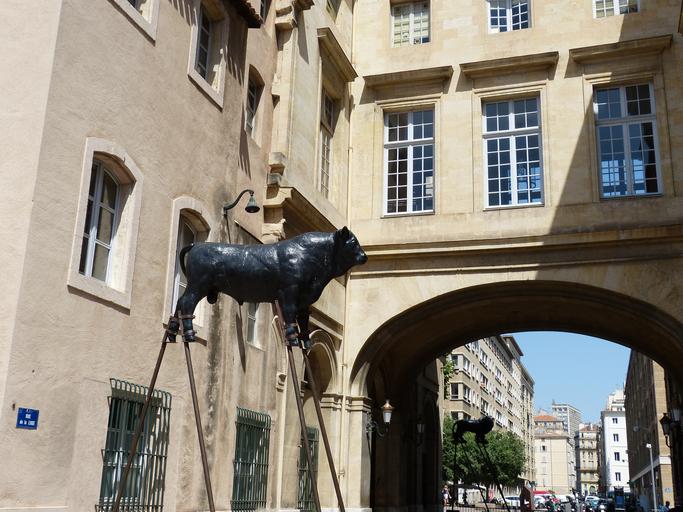 Keywords: marseille monument statue sculpture art bull ox beef france facade architecture old town building historically