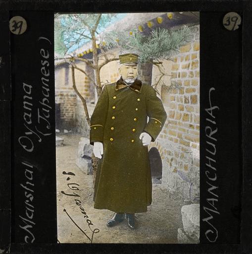 Keywords: Marshal Oyama of the Japanese Infantry, Manchuria, ca. 1882-ca. 1936 (imp-cswc-GB-237-CSWC47-LS8-039).jpg en <br> Marshal Oyama of the Japanese Infantry Manchuria ca 1882-ca 1936 Photograph of Marshal Oyama of the Japanese Infantry Marshal Oyama is standing outside a low brick building; he is wearing a military coat and white gloves The image contains Oyama's signature ; This belongs to a series of Church of Scotland Foreign Missions Committee lantern slides relating to the Scottish missionary Dugald Christie Dugald Christie was born in Glencoe in Scotland and studied medicine under the auspices of the Edinburgh Medical Missionary Society In 1882 along with his first wife Elizabeth he went to Manchuria to work as a medical missionary of the United Presbyterian Church of Scotland He worked initially in Newchang and later moved to the capital of Mukden where he opened Manchuriaas first hospital in 1884 In 1912 he established Mukden Medical College Dugald Christie retired in 1923 and died in Edinburgh in 1936 Photographer Unknown Filename imp-cswc-GB-237-CSWC47-LS8-039 tif Coverage date 1882/1936 Part of collection International Mission Photography Archive ca 1860-ca 1960 Geographic subject region Manchuria Type images Part of subcollection Photographs from the Centre for the Study of World Christianity University of Edinburgh U K ca 1900-ca 1940s Repository name Centre for the Study of World Christianity Archival file impaunpub_Volume7/1701 url Repository address The University of Edinburgh School of Divinity New College Mound Place Edinburgh EH1 2LX United Kingdom Geographic subject country China; Japan Format aacr2 1 lantern slide 8 x 8 cm Geographic subject continent Asia Rights Contact the repository for details Part of series Dugald Christie LS8 Repository email divinity-CSWC ed ac uk Subject lcsh Keyword Soldiers Date created 1882/1936 Publisher of the digital version University of Southern California Libraries Subject aat genre portraits Format aat lantern slides Legacy record ID impa-m69150 Access conditions http //www ed ac uk/schools-departments/divinity/research/centres/world-christianity/collections-resources File GB 237 CSWC47/LS8/39 1882/1936 author http //digitallibrary usc edu/cdm/ref/collection/p15799coll123/id/64820 PD-old-70-1923 Magic lantern images Images from USC Digital Library uploaded by Fæ International Mission Photography Archive ca 1860-ca 1960 Iwao Oyama |