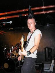 Keywords: Mart-Simma i Vättern-Förfest2007.jpg Mart in Simma i Vättern playing at pre-party before Augustibuller 2007 Own 2007 Liftarn Augustibuller 2007 Punk rock musicians Files by Liftarn Mohawk Punk fashion