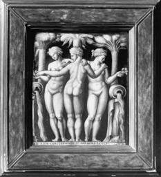 | Keywords: Martin Didier Pape - Plaque with the Three Graces - Walters 44219.jpg In antiquity the three Graces daughters of Jupiter personified beauty charity and intellect their interlocking arms symbolizing the connections between these qualities The Roman marble that excited the imagination of Renaissance artists was a copy now in the cathedral at Siena after a lost Greek original and was recorded in an influential engraving by Marcantonio Raimondi 1480-1524 The inscription copied from the engraving translates as These are Roman Charities or Graces sculpted from snowy white marble The three dignified female nudes with their restrained rhythmic gestures-a celebration of feminine grace as well as a visual citation of antique sculpture-make a fascinating contrast to the Plaque with Acrobats ca 1575 Renaissance technique painted enamel copper cm 24 3 20 8 accession number 44 219 37553 Baron A Oppenheim cat no 287 J Pierpont Morgan New York no 870 Arnold Seligmann Rey Co New York date and mode of acquisition unknown Henry Walters Baltimore 1919 by purchase Walters Art Museum Henry Walters Acquired by Henry Walters 1919 place of origin Limoges France Walters Art Museum license Limoges painted enamels in the Walters Art Museum Martin Didier Pape Media contributed by the Walters Art Museum needs category review Painted enamel art in the Walters Art Museum |