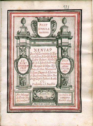 | Keywords: Martin droeswoode-faria i sousa.jpg es Portada calcográfica de Nenia en el fallecimiento del excelentísimo señor don José López Pacheco de Manuel de Faria y Sousa Madrid 1644 1644 http //www lllf uam es/~fmarcos/informes/BNArgentina/catalogo/421 jpg Martin Droeswoode other versions PD-old-70-1923 Martin Droeshout |