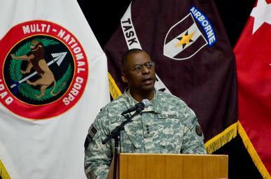 | Keywords: Martin Luther King Jr. Service in Baghdad DVIDS145657.jpg en Lt Gen Lloyd J Austin III commanding general Multi-National Corps - Iraq offers heartfelt words Jan 19 at Al Faw Palace on the U S 's vast civil rights accomplishments due in a large part to Martin Luther King Jr during a ceremony commemorating his work 2009-01-19 Lee Craker https //www dvidshub net/image/145657 145657 2009-01-19 16 52 BAGHDAD IQ PD-USGov Lloyd Austin Al-Faw Palace Images from DoD uploaded by Fæ | ||||
