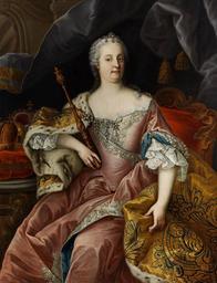 | Keywords: Martin van Meytens (workshop) Maria Theresia.jpg workshop of Kaiserin century 18 Oil on canvas cm 96 75 unknown http //www hampel-auctions com/ Hampel Auctions other versions <gallery>Martin van Meytens workshop Franz Stephan jpg counterpart Franz I Stephan</gallery> PD-old-100 DEFAULTSORT 1760c; Maria Theresia Images from Hampel Auctions Maria Theresa of Austria by Martin van Meytens 18th-century portrait paintings location missing 18th-century portrait paintings not categorised by year 18th-century oil portraits of sitting women at three-quarter length Blue drapery in portrait paintings Ermine clothing in art Pendant portraits Portrait paintings of women with crowns on cushions Portraits holding sceptres Tables in portrait paintings |