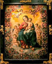 | Keywords: Martinez-virgen rosario.jpg Artwork es La Virgen del Rosario en guirnalda de flores Oil canvas 185 x 146 cm Medina del Campo Colegiata de San Antolín http //www museoferias net/marzo2007 htm Credit line c 1620 Francisco Martínez Other versions PD-Art Francisco Martínez Depictions of the Virgin Mary |