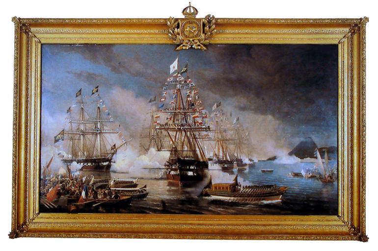 | Keywords: Martino-constituição-MHN.jpg  Artwork Creator Eduardo de Martino title Frigate Constituição Fragata Constituição 1872 oil canvas cm 200 349 Museu Histórico Nacional MHN Rio de Janeiro Brazil O quadro retrata a chegada da fragata Constituição à Baía da Guanabara trazendo a princesa D Teresa Cristina noiva de D Pedro II em 3 de setembro de 1843 scan de Museu Histórico Nacional edição Banco Safra PD-Art Other versions PLEASE DO NOT REMOVE THE FRAME PD-old-auto 1912 Romantic paintings in Brazil Paintings in the Museu Histórico Nacional Eduardo de Martino Frigates of Brazil Naval ships of Brazil in art 1870s paintings from Brazil |