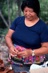 | Keywords: state library and archives of florida statelibraryandarchivesofflorida florida dollmaking dolls seminole dolls seminoledolls mary b. billie marybbillie big cypress seminole indian reservation bigcypressseminoleindianreservation people outdoor Local call number: FS80320a Title: [Mary Billie wrapping palmetto fiber around cardboard for the Seminole doll she is making: Big Cypress Reservation, Florida] Personal Author: Dyen, Doris J., Collector. Date: Photographed on July 15, 1980. Physical descrip: 1 slide: col. General Note: Mary B. Billie has been a dollmaker since she was 17. She learned the skill by watching her mother, who learned it from Mary's grandmother. Accompanying note: "Mary stuffs the head with pieces of palmetto fiber. 'If she uses something else like cotton, the needle won't go through that cotton. So she uses that palmetto fiber. Then she would put the palmetto fibers inside the doll to make it stand.' Mary often saves time by stuffing the bodies with cotton instead of fiber, 'since the body doesn't need much sewing. After she finishes that, I guess she puts that cardboard and wraps that palmetto around it and put[s] it on the bottom so stuff would not come out when it stands. She'll cut that cardboard out and make a circle big enough where she stuffed it, uh, cotton. And then she'll take that palmetto fiber and put it around that cardboard where she make that circle, cut that circle. And then she'll, uh, put it on the bottom of that doll and sew it up so it can stand straight. Then she'll make the eyes for it and the mouth.'" Series Title: (Florida Folklife Collection.) Repository: State Library and Archives of Florida, 500 S. Bronough St., Tallahassee, FL 32399-0250 USA. Contact: 850.245.6700. Archives@dos.state.fl.us Persistent URL: www.floridamemory.com/items/show/120254 Local call number: FS80320a Title: [Mary Billie wrapping palmetto fiber around cardboard for the Seminole doll she is making: Big Cypress Reservation, Florida] Personal Author: Dyen, Doris J., Collector. Date: Photographed on July 15, 1980. Physical descrip: 1 slide: col. General Note: Mary B. Billie has been a dollmaker since she was 17. She learned the skill by watching her mother, who learned it from Mary's grandmother. Accompanying note: "Mary stuffs the head with pieces of palmetto fiber. 'If she uses something else like cotton, the needle won't go through that cotton. So she uses that palmetto fiber. Then she would put the palmetto fibers inside the doll to make it stand.' Mary often saves time by stuffing the bodies with cotton instead of fiber, 'since the body doesn't need much sewing. After she finishes that, I guess she puts that cardboard and wraps that palmetto around it and put[s] it on the bottom so stuff would not come out when it stands. She'll cut that cardboard out and make a circle big enough where she stuffed it, uh, cotton. And then she'll take that palmetto fiber and put it around that cardboard where she make that circle, cut that circle. And then she'll, uh, put it on the bottom of that doll and sew it up so it can stand straight. Then she'll make the eyes for it and the mouth.'" Series Title: (Florida Folklife Collection.) Repository: State Library and Archives of Florida, 500 S. Bronough St., Tallahassee, FL 32399-0250 USA. Contact: 850.245.6700. Archives@dos.state.fl.us Persistent URL: www.floridamemory.com/items/show/120254 |