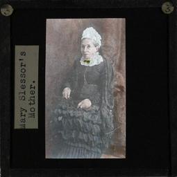 | Keywords: Mary Slessor's mother, late 19th century (imp-cswc-GB-237-CSWC47-LS2-003).jpg en <br> Mary Slessor's mother late 19th century Portrait image of Mary Slessor's mother seated and dressed in a black gown ; Mary Slessor was a Scottish missionary known for her work in Africa and for promoting women's rights Her mother was from Old Meldrum Aberdeenshire Scotland and was a member of Belmont Street Church Aberdeen Mary was born in Aberdeen and her family later moved to Dundee Photographer Unknown Subject personal name Slessor Mary Mitchell 1848-1915 Filename imp-cswc-GB-237-CSWC47-LS2-003 tif Coverage date circa 1850 Part of collection International Mission Photography Archive ca 1860-ca 1960 Geographic subject region Aberdeenshire Type images Part of subcollection Photographs from the Centre for the Study of World Christianity University of Edinburgh U K ca 1900-ca 1940s Repository name Centre for the Study of World Christianity Archival file impaunpub_Volume7/1278 url Repository address The University of Edinburgh School of Divinity New College Mound Place Edinburgh EH1 2LX United Kingdom Geographic subject country Scotland Format aacr2 1 lantern slide 8 x 8 cm Rights Contact the repository for details Part of series Mary Slessor LS2 Repository email divinity-CSWC ed ac uk Subject lcsh Keyword Religion Date created circa 1880 Publisher of the digital version University of Southern California Libraries Subject aat genre portraits Format aat lantern slides Legacy record ID impa-m68147 Access conditions http //www ed ac uk/schools-departments/divinity/research/centres/world-christianity/collections-resources File GB 237 CSWC47/LS2/3 1880 author http //digitallibrary usc edu/cdm/ref/collection/p15799coll123/id/64401 PD-old-70-1923 Magic lantern images Images from USC Digital Library uploaded by Fæ International Mission Photography Archive ca 1860-ca 1960 |