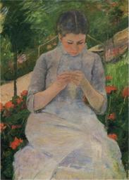 | Keywords: MaryCassatt-Young Woman Sewing in Garden.png Artwork Q17491792 ja 庭で縫い物をする若い女 en Young Woman Sewing in Garden Creator Mary Cassatt ja 1880年-1882年 en 1880-1882 Oil on canvas cm 92 0 65 0 Institution Musée d'Orsay 島田 夫監修 オルセー美術館の名画101選 小学館 2010年 ISBN 978-4-09-607026-0 PD-old-70 Other versions Paintings by Mary Cassatt Paintings in the Musée d'Orsay |