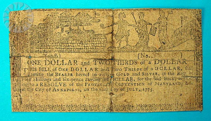 | Keywords: legendary coins legendarycoins numismatics money smithsonian probably public domain probablypublicdomain SI Neg. 2005-27394. Date: 9/1/2005...American currency was sometimes used to mold public opinion during the War for Independence. The high-minded Latin mottoes suggested by Ben Franklin had this intent. So did a series of small, printed messages on North Carolina currency issued between 1778 and 1780. But an early series of Maryland notes, including this specimen, stand out. .The note is worn, and, in common with several of its fellows, it was carefully stitched together, obscuring part of the design. But if we could see everything, we would see that, on the front of the note, a figure representing Great Britain receives a petition of the Continental Congress. It is handed to her by an America, who is simultaneously trampling on a scroll marked SLAVERY and holding aloft a Liberty cap on a pole, a beacon for American troops who are hastening to the scene from the right. .Meanwhile, George III (the figure at the center-left) is doing his best to set fire to an American city (perhaps Baltimore) already under attack from a British fleet. He's also trampling a copy of Magna Charta, just to underscore the point. Inscriptions along the sides read "AN APPEAL TO HEAVEN" and "PRO ARIS ET FOCIS" (For altars and hearths). The other side of the note conveys hope. Britain and America are shown achieving peace, with the reminder that "PAX TRIUMPHIS POTIOR" (Peace is preferable to victory)..The note was designed by Annapolis silversmith Thomas Sparrow in the summer of 1775. His initials are inscribed on the front and his full name on the back. This series of Maryland notes remains the most politically charged currency ever issued in the United States during wartime..Click here to view the obverse...Credit: Tom Mulvaney (Smithsonian Institution) SI Neg. 2005-27394. Date: 9/1/2005...American currency was sometimes used to mold public opinion during the War for Independence. The high-minded Latin mottoes suggested by Ben Franklin had this intent. So did a series of small, printed messages on North Carolina currency issued between 1778 and 1780. But an early series of Maryland notes, including this specimen, stand out. .The note is worn, and, in common with several of its fellows, it was carefully stitched together, obscuring part of the design. But if we could see everything, we would see that, on the front of the note, a figure representing Great Britain receives a petition of the Continental Congress. It is handed to her by an America, who is simultaneously trampling on a scroll marked SLAVERY and holding aloft a Liberty cap on a pole, a beacon for American troops who are hastening to the scene from the right. .Meanwhile, George III (the figure at the center-left) is doing his best to set fire to an American city (perhaps Baltimore) already under attack from a British fleet. He's also trampling a copy of Magna Charta, just to underscore the point. Inscriptions along the sides read "AN APPEAL TO HEAVEN" and "PRO ARIS ET FOCIS" (For altars and hearths). The other side of the note conveys hope. Britain and America are shown achieving peace, with the reminder that "PAX TRIUMPHIS POTIOR" (Peace is preferable to victory)..The note was designed by Annapolis silversmith Thomas Sparrow in the summer of 1775. His initials are inscribed on the front and his full name on the back. This series of Maryland notes remains the most politically charged currency ever issued in the United States during wartime..Click here to view the obverse...Credit: Tom Mulvaney (Smithsonian Institution) |