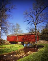 Keywords: maryland covered bridge landmark historic stream creek reflections water nature outside trees countryside rural beautiful landscape scenic