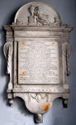 | Keywords: MaryParlby Died1784 TeigngraceChurch Devon.PNG en Mural monument in Teigngrace Church Devon to Mary Parlby 1725-1784 wife of James I Templer 1722 “1782 of Stover House Teigngrace Inscribed as follows Sacred to the memory of Mrs Mary Templer for a period of thirty five years the affectionate wife and of two years the afflicted widow of James Templer Esq The duties of every relation which Providence assigned her she strictly and chearfully sic discharged A faithful partner in all the vicissitudes of life she participated his pleasure she divided and mitigated his pain Her discretion was his resource in difficulty her tenderness his consolation in distress That animated sense of duty to her Creator and fellow creatures that prudence temper'd with generosity and good humour which threw a lustre and dignity on her own life she inculcated by precept and example on her numerous progeny The efficacy of such virtue was not restrained to the narrow sphere of parental and conjugal duty; her piety was diffuse and exemplary her charity universal To her domestics she was a gentle mistress a condescending friend They who possess'd her confidence never failed to partake her bounty; To the poor her liberality had no bounds; when she saw distress whatever shape it assumed then she saw an occasion to pity and to relieve Having thus performed the part of a good matron and a pious Christian mature in virtues as in years when ye tenderest tie which bound her to this Earth was dissolv'd she readily resigned that being of which ye better part was extinct and amid the embraces of her sorrowing children expired on the twenty first of June 1784 aged 59 years </br> own photo Lobsterthermidor <span class signature-talk ></span> 16 10 21 July 2015 UTC 20-14 Teigngrace Wall mounted church monuments in Devon |