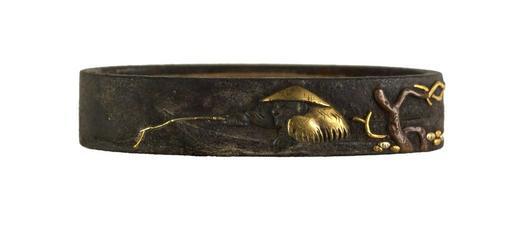 | Keywords: Masanaga (a) - Fuchi with a Man Fishing - Walters 51994.jpg A man is depicted in the prow of a boat fishing with a pole He is wearing a straw hat and straw coat On the reverse a heron and a crow are depicted in flight century 18 Edo iron copper silver gold cm 3 7 accession number 51 994 31301 William T / Henry Walters Collection Baltimore date and mode of acquisition unknown Walters Art Museum Henry Walters Acquired by William T or Henry Walters Signature Masanaga kao place of origin Japan Walters Art Museum license Fuchi in the Walters Art Museum Media contributed by the Walters Art Museum needs category review Masanaga |