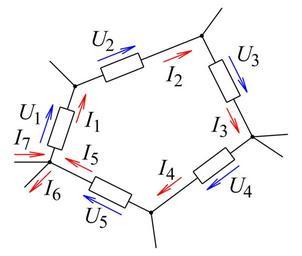 Keywords: Masche und Knoten.svg de Masche und Knoten in einer elektrischen Schaltung own Saure 2012-06-07 An Anlehnung an File Kirchhoff_law2 svg Cc-zero Kirchhoff's circuit laws