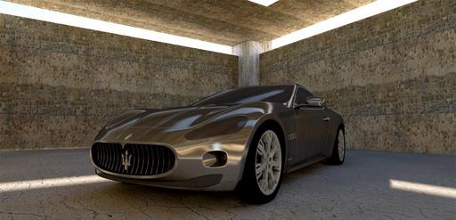 Keywords: maserati maserati gt sports car monochrome silver auto automobile contour metallic afternoon shadow hall concrete wall 3d 3d model computer graphics machine 3d visualization pirohd rendering design pininfarina