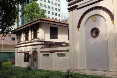 | Keywords: masjid hajjah fatimah mosque singapore kampong glam beach road public domain publicdomain outdoor Painted in brown and cream colours, the mosque is a unique blend of both Malaccan style and European classical elements. Its key elements include the entrance gate, the minaret tower, the ablution area, the prayer hall, the mausoleum, a garden and the imam's residence. Next to the mosque are ancillary buildings. infopedia.nl.sg/articles/SIP_259_2005-01-06.html Painted in brown and cream colours, the mosque is a unique blend of both Malaccan style and European classical elements. Its key elements include the entrance gate, the minaret tower, the ablution area, the prayer hall, the mausoleum, a garden and the imam's residence. Next to the mosque are ancillary buildings. infopedia.nl.sg/articles/SIP_259_2005-01-06.html |