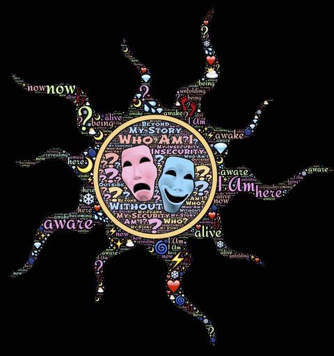 | Keywords: masks drama human story zen question identity faces who security insecurity belief disguise mystery masquerade stage self-awareness happy sad polarity dualism define self spiritual ego paradox corona emoji mystical mysterious black background |