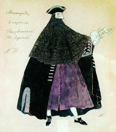 | Keywords: Masquerade by Golovin - Anonimous 2 (1917).jpg Баута еизвестный 1917 Эскизы костюмов к д аме Ю Ле монтова аска ад Госуда ственный музей теат ального и музыкального искусства http //www art-catalog ru/picture php id_picture 16329 1917 А Головин Creator Alexander Yakovlevich Golovin PD-old-auto 1930 Masquerade by Golovin Files uploaded by Shakko from various sources Bauta Theatrical museum Saint Petersburg Tabarro | ||||