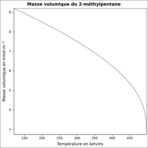 | Keywords: Masse volumique 2-méthylpentane.svg fr Masse volumique calculée d'après <br/> Robert H Perry et Donald W Green Perry's Chemical Engineers' Handbook McGraw-Hill USA 1997 7e éd 2400 p ISBN 0-07-049841-5 p 2-94 own Epop 2010-06-27 Created with Gnumeric Density curves |