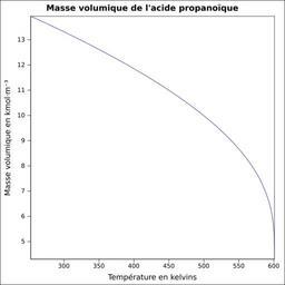 | Keywords: Masse volumique acide propanoïque.svg fr Masse volumique calculée d'après <br/> Robert H Perry et Donald W Green Perry's Chemical Engineers' Handbook McGraw-Hill USA 1997 7e éd 2400 p ISBN 0-07-049841-5 p 2-94 own Epop 2010-06-27 Created with Gnumeric Density curves |