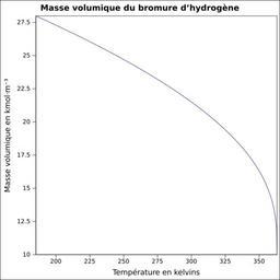| Keywords: Masse volumique bromure d’hydrogène.svg fr Masse volumique calculée d'après <br/> Robert H Perry et Donald W Green Perry's Chemical Engineers' Handbook McGraw-Hill USA 1997 7e éd 2400 p ISBN 0-07-049841-5 p 2-94 own Epop 2010-06-27 Created with Gnumeric Density curves |