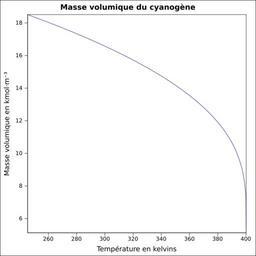 | Keywords: Masse volumique cyanogène.svg fr Masse volumique calculée d'après <br/> Robert H Perry et Donald W Green Perry's Chemical Engineers' Handbook McGraw-Hill USA 1997 7e éd 2400 p ISBN 0-07-049841-5 p 2-94 own Epop 2010-06-27 Created with Gnumeric Density curves |