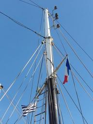 Keywords: mast sailboat traditions blue sky navigation three-masted boat flag brest brittany festival nautical maritime