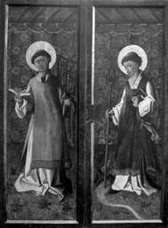| Keywords: Master of Arguis - Exterior of a Triptych with Saints Lawrence and Leonard - Walters 37868 - Closed.jpg Altarpieces with hinged wings were closed except on major feast days so that ordinarily only the exterior panels of the wings were visible They were often less sumptuous than the interior though no less intriguing Here everyday details and fantasy are intimately linked The vigorously painted figures of Saints Lawrence holding the grill on which he was burned alive and Leonard stand in front of a brocade cloth hung from simple hooks in a low-ceilinged room The saints stand in a meadow strewn with little flowers At Saint Leonard's feet is the spring which he discovered using a divining rod and the animals drawn to its waters The interior is much more flamboyant with an architecturally-defined center panel originally housing painted wooden statues of saints now missing and individual saints on the wings The name of the painter is unknown but the style including the characteristic circles under the eyes is close to that of the Altarpiece of the Legend of Saint Michael from a church in Arguis Spain now in the Prado Museum in Madrid However the attribution is uncertain; indeed comparisons have also been made with Austrian painting of the period ca 1450 Late Medieval oil gold leaf and wax on wood framed cm 133 4 205 7 26 7 ; open cm 137 16 206 38 29 21 accession number 37 868 34852 Henry Walters Baltimore after 1929 by purchase Walters Art Museum Henry Walters Acquired by Henry Walters place of origin Aragon Spain Walters Art Museum license 2D Renaissance paintings in the Walters Art Museum Master of Arguis Paintings in the Walters Art Museum Media contributed by the Walters Art Museum needs category review |