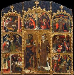 | Keywords: Master of Badalona - Altarpiece of Saint John the Baptist and Saint Stephen - Google Art Project.jpg Before 1433 1433 After 1433 1433 Master 588683 of Badalona Before 1433 - After 1433 /collection/museu-nacional-dart-de-catalunya/artwork/altarpiece-of-saint-john-the-baptist-and-saint-stephen-master-of-badalona/573561/ Master of Badalona /artist/master-of-badalona/4130446/ 4130446 /collection/museu-nacional-dart-de-catalunya/ Museu Nacional d'Art de Catalunya - MNAC Barcelona 497131 http //www mnac cat/ 12/28/2011 4 40 11 PM /collection/museu-nacional-dart-de-catalunya/artwork/altarpiece-of-saint-john-the-baptist-and-saint-stephen-master-of-badalona/573561/ 1401 Religion Tempera and gold leaf on wood True 1988 573561 True 1433 First third of 15th century /collection/museu-nacional-dart-de-catalunya/level/ground-floor/2552108/ Ground floor 3/24/2012 4 42 36 AM 015824-CJT http //art mnac cat/fitxatecnica html;jsessionid inventoryNumber 015824-CJT lang en Museu Nacional d'Art de Catalunya Painting 1400 1440 Badalona Provenance w1985 x h1988 x d118 cm First third of 15th century False 0 984375 Object /collection/museu-nacional-dart-de-catalunya/level/ground-floor/2552108/room-24/588598/ Room 24 altarpiece-of-saint-john-the-baptist-and-saint-stephen-master-of-badalona Altarpiece of Saint John the Baptist and Saint Stephen a 1985 Acquired 1903 015824-CJT Tempera and gold leaf on wood Religion special url_id vwEl5t8JuV4x_Q PD-old-100-1923 1433 Gothic paintings in the Museu Nacional d'Art de Catalunya Google Art Project works by Master of Badalona Culture of Badalona Church of Santa Maria Badalona |
