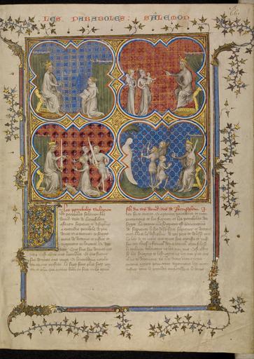 | Keywords: Master of Jean de Mandeville (French, active 1350 - 1370) - Solomon Teaching Rehoboam; The Judgment of Solomon; Solomon Testing the Legitimacy of Three Brothers - Google Art Project.jpg 1350 1370 active 1350 - 1370 6819427 Master of Jean de Mandeville French French 1350 - 1370 /collection/the-j-paul-getty-museum/artwork/solomon-teaching-rehoboam-the-judgment-of-solomon-solomon-testing-the-legitimacy-of-three-brothers-master-of-jean-de-mandeville-french-active-1350-1370/6806460/ Master of Jean de Mandeville French active 1350 - 1370 illuminator /artist/master-of-jean-de-mandeville/6806451/ 6806451 /collection/the-j-paul-getty-museum/ The J Paul Getty Museum 343005 http //www getty edu/museum 3/12/2012 1 56 11 PM /collection/the-j-paul-getty-museum/artwork/solomon-teaching-rehoboam-the-judgment-of-solomon-solomon-testing-the-legitimacy-of-three-brothers-master-of-jean-de-mandeville-french-active-1350-1370/6806460/ 1360 about 1360 - 1370 Solomon king of Israel Rehoboam Solomon Tempera on parchment 349 6806460 True 1370 3/25/2012 9 26 05 AM lido getty edu-gm-obj2925 http //www getty edu/art/gettyguide/artObjectDetails artobj 2925 http //www getty edu/legal/copyright html Folio 1360 1380 Paris France Creation w260 x h349 cm about 1360 - 1370 False 0 708984375 Part solomon-teaching-rehoboam-the-judgment-of-solomon-solomon-testing-the-legitimacy-of-three-brothers-master-of-jean-de-mandeville-french-active-1350-1370 Solomon Teaching Rehoboam; The Judgment of Solomon; Solomon Testing the Legitimacy of Three Brothers s 260 Tempera on parchment Solomon king of Israel Rehoboam Solomon http //www getty edu/legal/copyright html special url_id GgEl8TxttEV3YA PD-old-100-1923 1370 Google Art Project works by Master of Jean de Mandeville MS 1 V2 Getty museum - Historical Bible Judgement of Solomon Miniatures of Solomon Book of Proverbs |