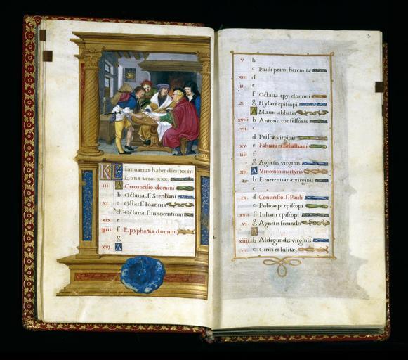 | Keywords: Master Jean de Mauléon - Playing Dice - Walters W4492V - Full Page.jpg Dice players make an unexpected appearance in this calendar for gambling is a rare theme for January They are playing raffle a game won by rolling three matching numbers at once similar to modern slot machines There seems to be some debate over the winning throw of three 3s for both players point at the dice but the peddler's smile suggests he has the upper hand over his disgruntled wealthy opponent Perhaps he is using weighted dice a common trick still used today ca 1524 Renaissance ink paint and gold on parchment cm 17 10 accession number W 449 2V 78205 Bishop Jean II de Mauléon ca 1523 by commission Gruel and Engelmann no 140 date and mode of acquisition unknown Henry Walters Baltimore date and mode of acquisition unknown Walters Art Museum Henry Walters Acquired by Henry Walters Checkmate Medieval People at Play The Walters Art Museum Baltimore 2010 place of origin Tours France Walters Art Museum license 3D Walters MS W449 - Book of hours by Jean de Mauleon Dice in art Games in medieval miniatures |