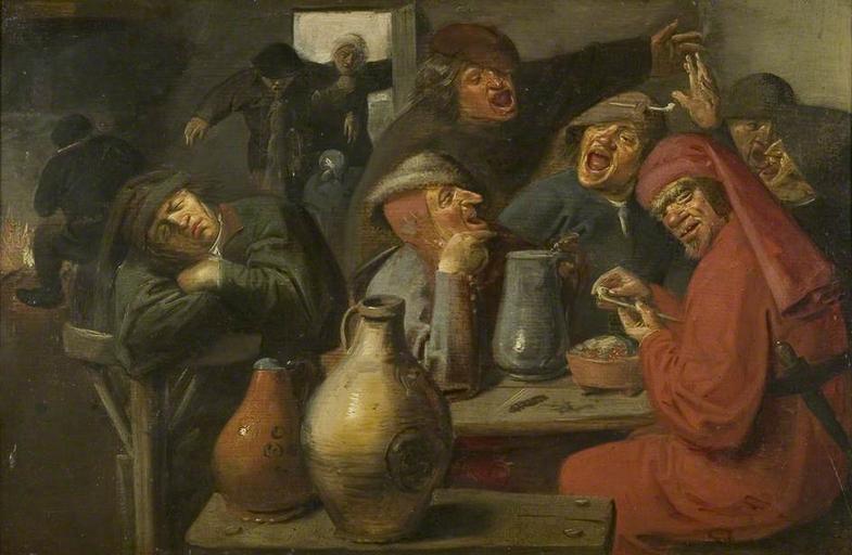 Keywords: Master of the Large Jars - Peasants Carousing (ca.1635).jpg Master of the Large Jars Maître des grandes jarres Netherlands century 17 formerly attributed to Title Interior of a Tavern Peasants Carousing Scène de taverne <br/> alternate title Seven Men Carousing in an Inn 1635 Oil on panel cm 27 3 40 9 Bristol Museum and Art Gallery accession number K1806 http //www vads ac uk/flarge php uid 88889 The National Inventory of Continental European Paintings object history purchased with the assistance of the Friends of Bristol Art Gallery 1948 Acquired by Frost and Reed from Col R E M Russell Ledbury by 1948 credit line exhibition history http //www bbc co uk/arts/yourpaintings/paintings/interior-of-a-tavern-peasants-carousing-188777 BBC Your Paintings Other versions PD-old-100 Master of the Large Jars Bristol City Museum and Art Gallery 17th-century genre paintings 17th-century oil on panel paintings Drinkware in art Paintings of peasants Images from BBC Your Paintings