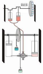 | Keywords: Matal anim1.gif fr Ceci est une animation montrant le principe de la machine à transporter au loin la force des rivières de Denis Papin Une roue à aubes ou à godet met en marche deux corps de pompe qui créent le vide sous leur pistons Le vide créé est distribué alternativement par un système de distribution manuel également inventé par Papin nommé le robinet à 4 voies Cette machine avait pour but 2 siècles avant l'électricité de transporter à distance la seule énergie connue alors celle des rivières en se servant du vide comme intermédiaire Own Vincentrey41 2000 Animated GIF Vacuum pumps Denis Papin Animations of pumps |