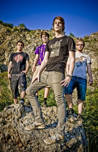 Keywords: Matej Hoto Hotka.jpg en Matej Hotka leader of slovak band From Our Hands own Alexyho Musical groups from Slovakia Punk rock groups Punk rock musicians Group photographs of men People with landscape backgrounds