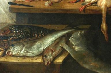 | Keywords: Matham Kitchen scene (detail) 01.jpg attributed to 1625 oil canvas Institution Wilanów Palace Museum accession number Wil 5615 object history credit line http //www wilanow-palac pl/image php/17625/jakob_matham_wnetrze_kuchni_1625_fragment2 jpg www wilanow-palac pl See below PD-old-100 DEFAULTSORT 1625; Kitchen scene Jacob Matham Details of paintings in the Wilanów Palace 17th-century still life paintings in Poland 17th-century paintings of cats Paintings of fish Paintings of lobsters 1625 paintings 1620s paintings in Poland 17th-century oil on canvas paintings in Poland |
