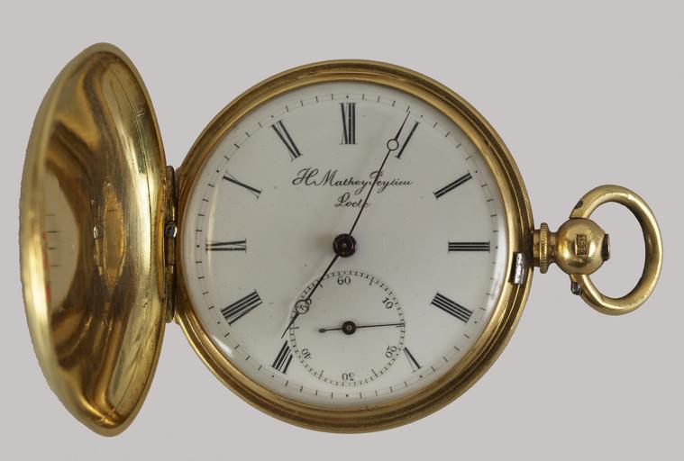 Keywords: Mathey Peytieu - Ladies Hunting Case Watch - Walters 58287 - Front Open.jpg An 18K gold case with translucent enamel over guilloché surface revealing engraved patterns Enameled in the face of the case is a putto with flowers and on the reverse is finely engraved gold ground covered with brown transluscent enamel and set with a half-pearl between 1840 1849 gold translucent enamel over guilloché surface rose diamonds rubies half-pearl Diam 1 11/16 x D 3/8 in 4 29 x 0 95 cm accession number 58 287 35509 Rebecca Ulman Weil date of acquisition unknown by purchase Henrietta Lehmayer Moser 1898-1960 Baltimore 1936 by inheritance from her aunt Liz and Peter Moser Baltimore 1958-1959 by gift from his mother Walters Art Museum Gift of Liz and Peter Moser 2006 place of origin Le Locle Switzerland Walters Art Museum license Media contributed by the Walters Art Museum needs category review Timepieces in the Walters Art Museum Media contributed by the Walters Art Museum needs artist review Pocket watches |