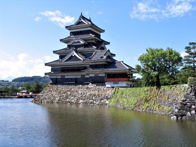 Keywords: Matsumoto Castle far 0504.jpg Matsumoto Castle Nagano Prefecture Japan 25 Aug 2004 Matsumoto Castle Keep Tower Moat of Matsumoto Castle