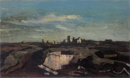 | Keywords: MatsumotoShunsuke Suburban Landscape(Fire Ruins).png Artwork 郊外 焼跡風景 Suburban Landscape Fire Ruins 竣介 Matsumoto Shunsuke 1946-1947 Oil on canvas cm 27 3 45 5 岩手 立美術館 Iwate Museum of Art 生誕100年 竣介展 図録 NHKプラネット 北・NHKプロモーション 2012年 PD-Japan 1948 Japan アメリカ軍による絨毯爆撃の後の 京の焼け野原を描いた 品 In the Pacific War commenced the U S Air Force bombering Tokyo strategically from 1944 and finally escalated it to carpet bombering which made most of the area destructed Matsumoto depicted its scenery on this painting Other versions 図録より原寸大でスキャン RGB各8bit 360dpi TIFFでセーブ後 GIMPでトリミングしてpngファイル化 GIMPのノイズ除去フィルタは適用していない PD-Japan Matsumoto Shunsuke |