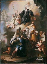| Keywords: Maulbertsch Hl Walburga 1749.jpg Die Heilige Walburga mit ihren Brüdern Willibald und Wunibald oil on canvas 117 x 84 cm Ulmer Museum http //www facebook com/ 1749 Creator Franz Anton Maulbertsch PD-old-100 Paintings in the Ulmer Museum Franz Anton Maulbertsch 1749 paintings 18th-century paintings of Christian saints Paintings of coats of arms Christian figures on clouds Curtains in art Paintings of Christian saints with putti Putti in the air Saint Walpurga | ||||