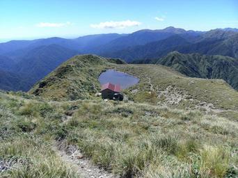 Keywords: Maungahuka Hut 0.jpg The Maungahuka hut at the tarn amidst the mountains general view own 2013-02-19 Sarang Maungahuka Hut